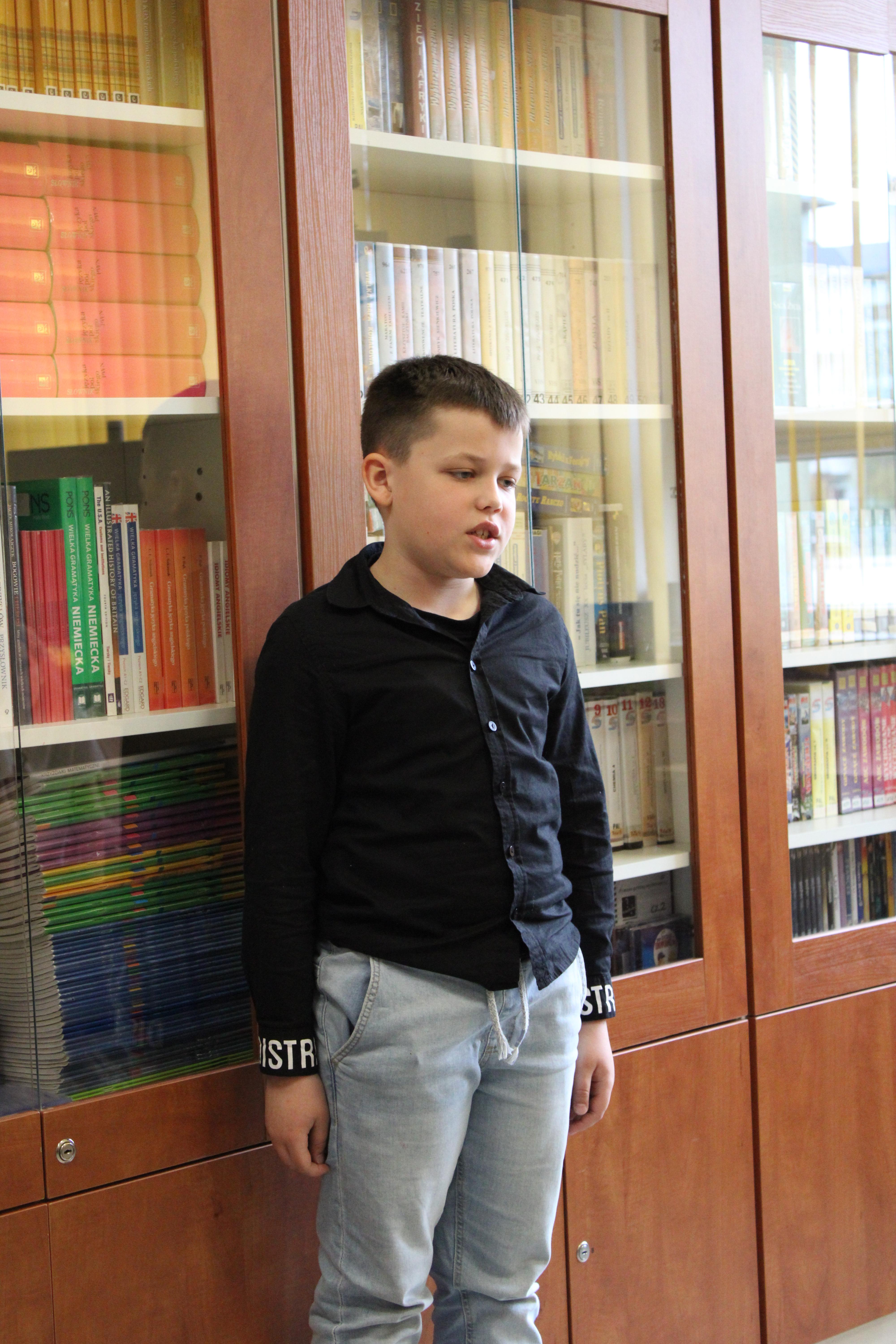 Eliminacje do Gminnego Konkursu Recytatorskiego Utworów Jana Brzechwy w kategorii klas 4 – 6 odbyły się 15 kwietnia w bibliotece szkolnej. Zgromadziły liczną grupę recytatorów z klas 4a, 4b, 4c, 4e, 4f, 5a, 5b, 5c, 5e i 6c – łącznie 22 uczniów. Oceniano dobór tekstu i jego pamięciowe opanowanie, interpretację, dykcję oraz wyraz artystyczny.