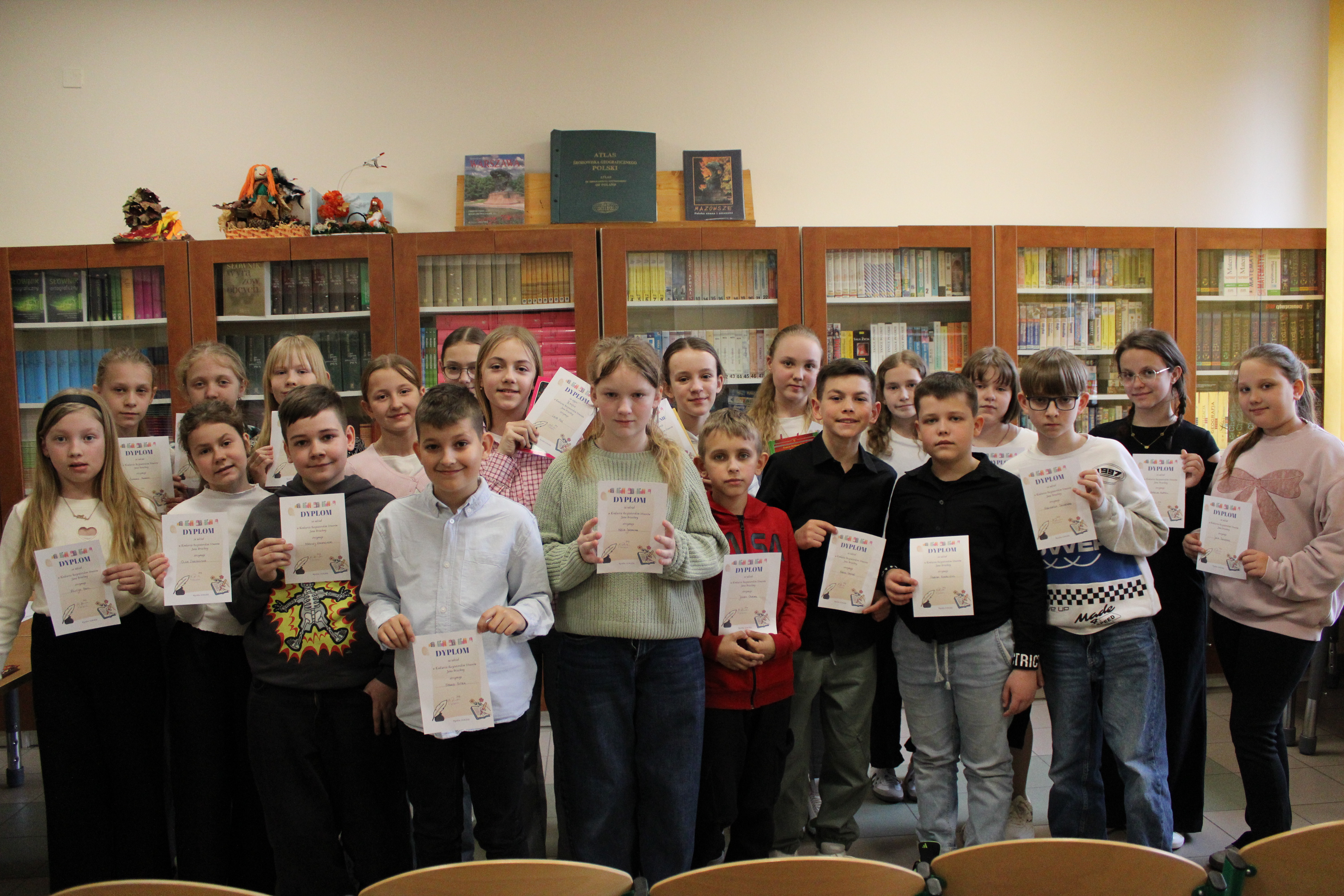 Dziękujemy wszystkim uczestnikom za zaangażowanie, gratulujemy umiejętności recytatorskich, szczególnie zwycięzcom i życzymy sukcesów w etapie gminnym, który odbędzie się 29 kwietnia 2026 r. o godz. 9.00 w Szkole Podstawowej im. Jana Brzechwy w Lucynowie.