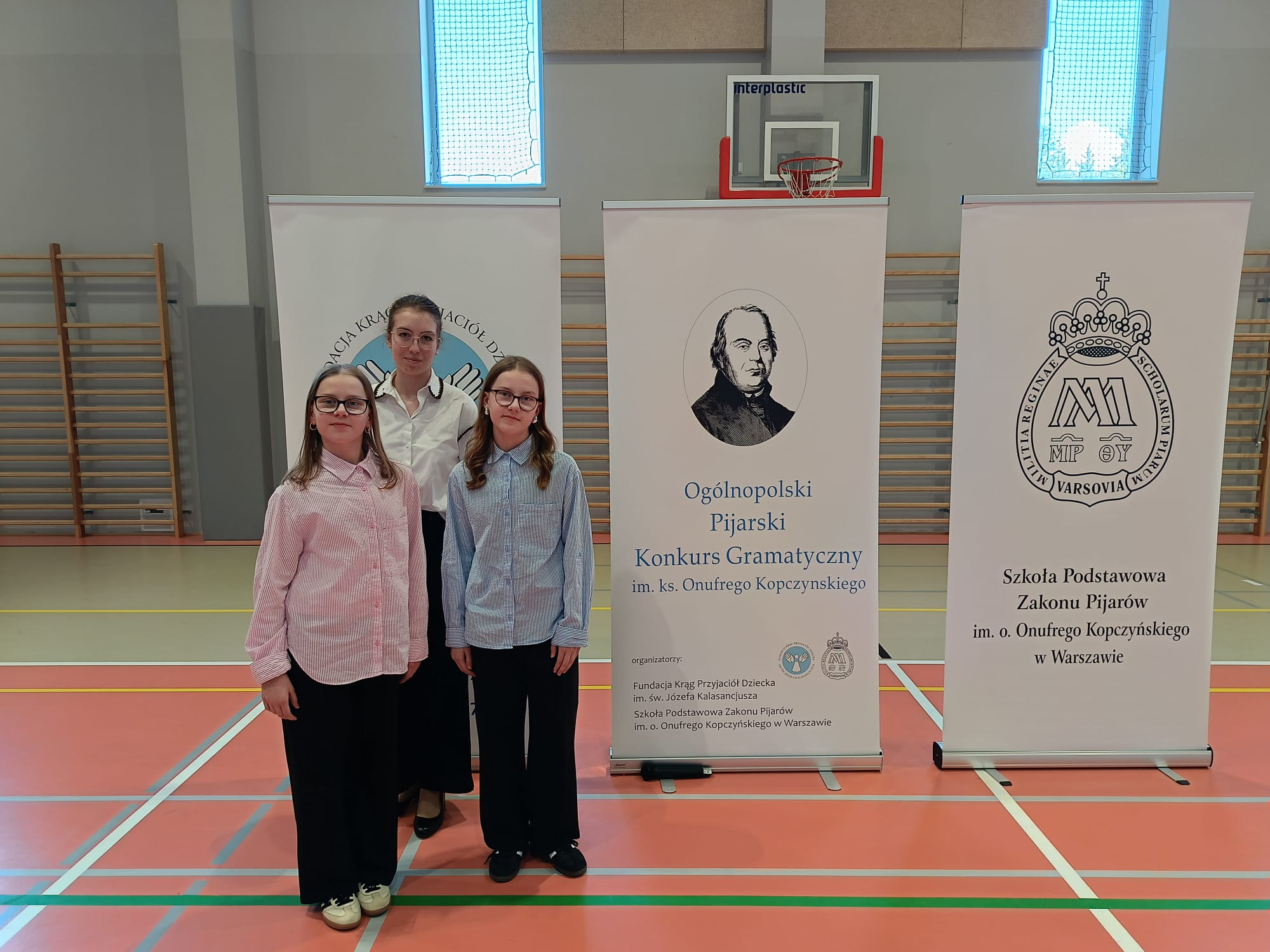 21 marca 2026 r. trzy uczennice z naszej szkoły - Weronika Kaźmierczak i Wiktoria Kaźmierczak z kl.7d oraz Antonina Pomian z kl. 8d - wzięły udział w finale XV Ogólnopolskiego Pijarskiego Konkursu Gramatycznego, organizowanego przez Szkołę Podstawową Zakonu Pijarów im. o. Onufrego Kopczyńskiego w Warszawie. Nauczycielki przygotowujące uczennice to p. Ewa Orzoł (7d) i p. Jolanta Popławska (8d).