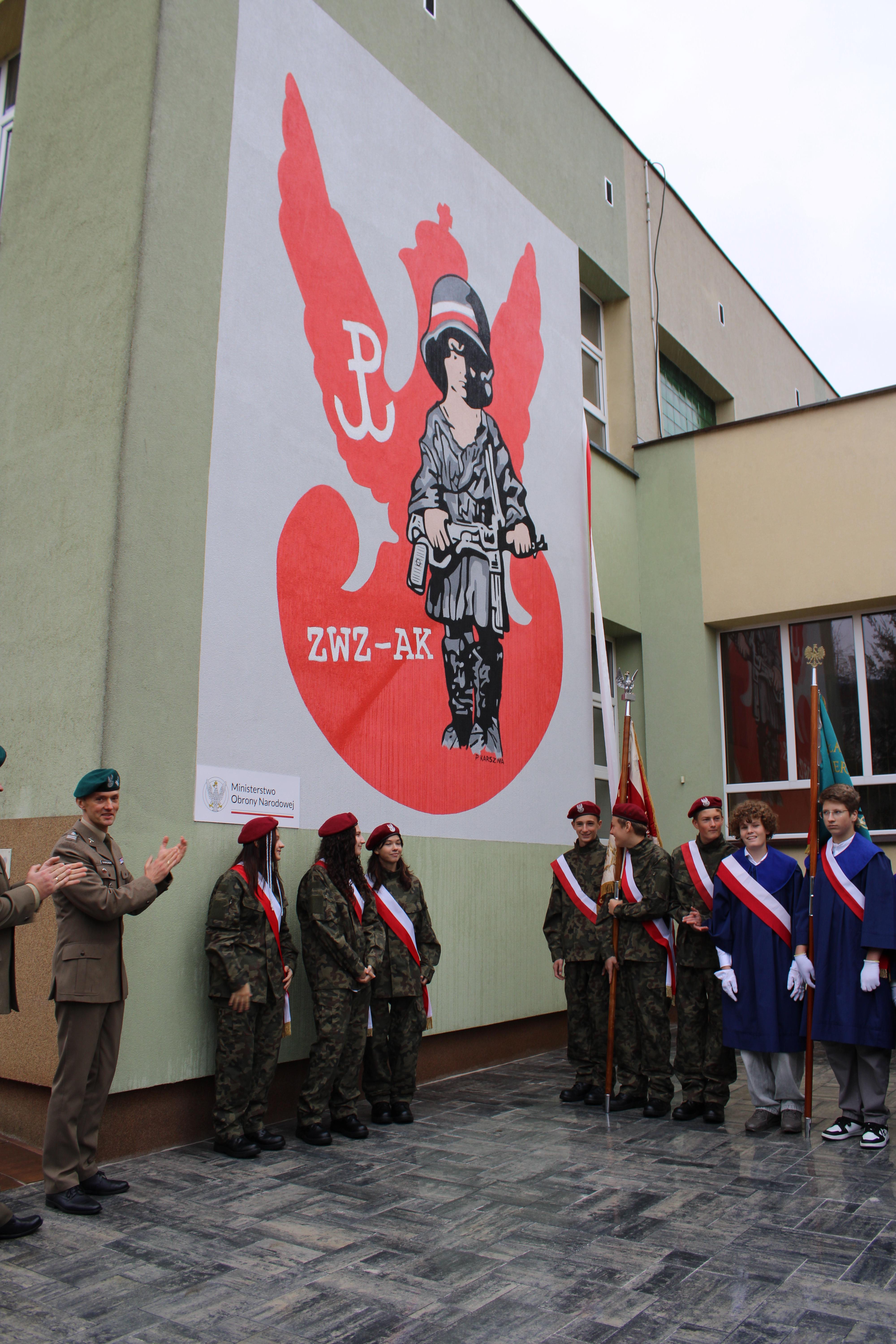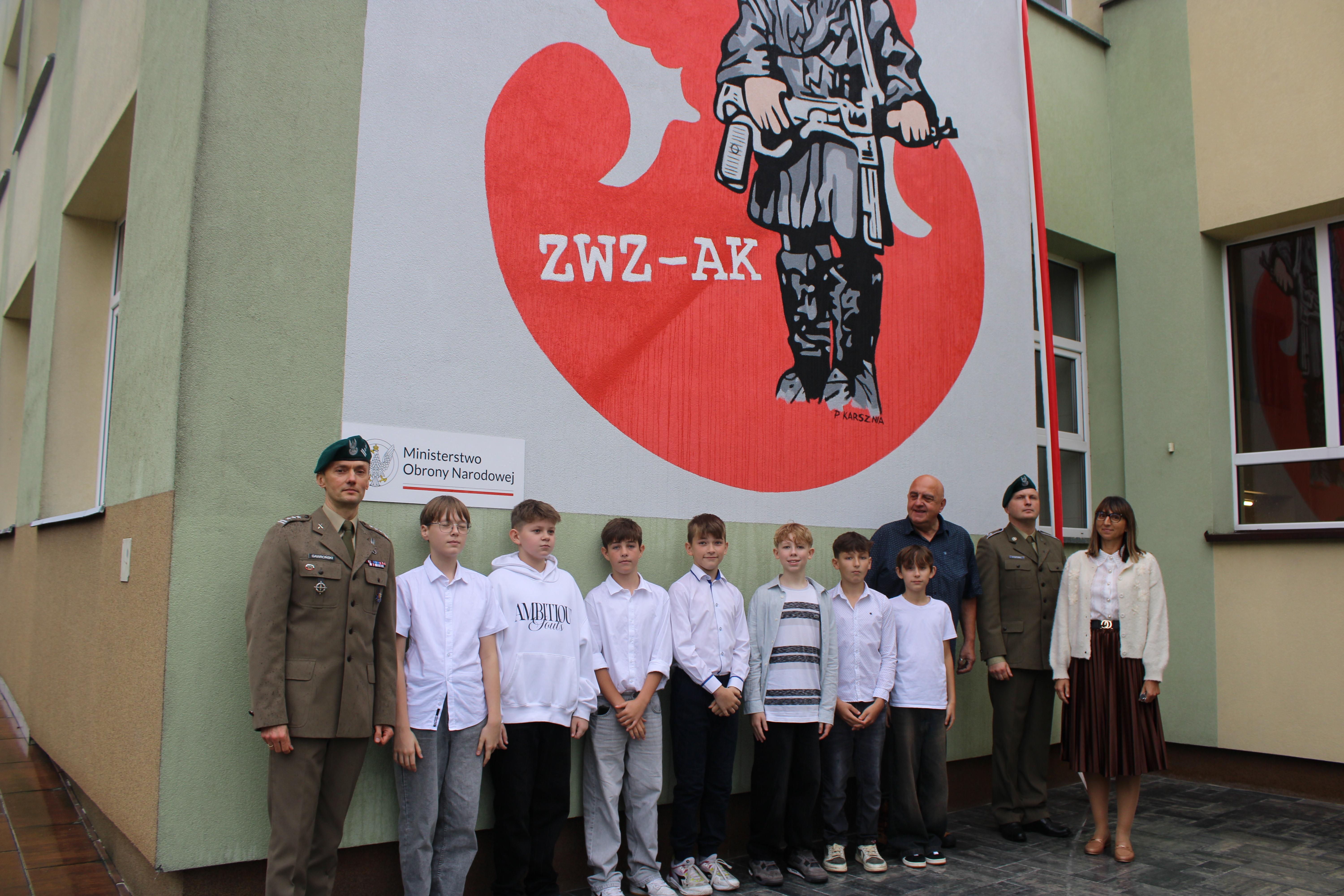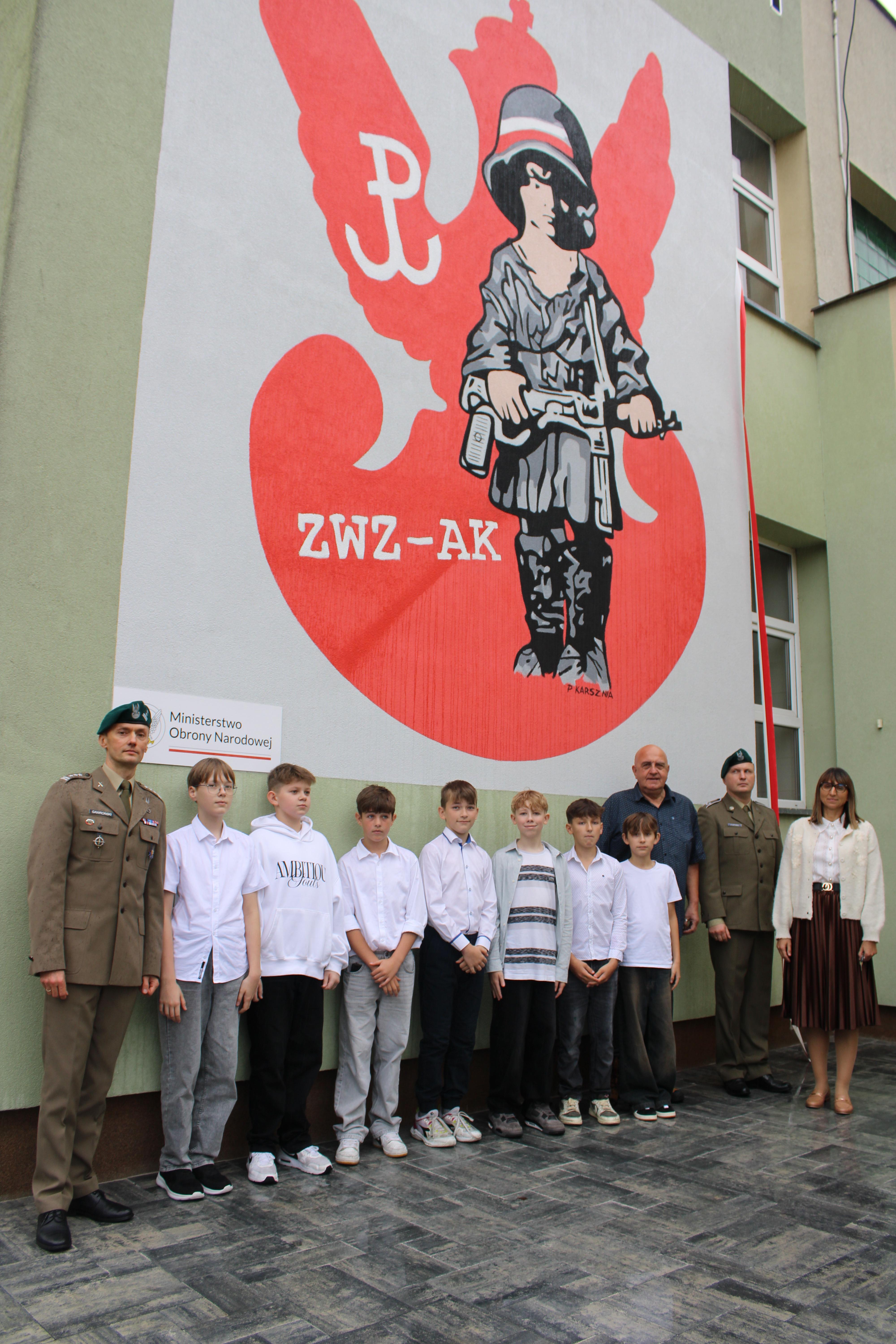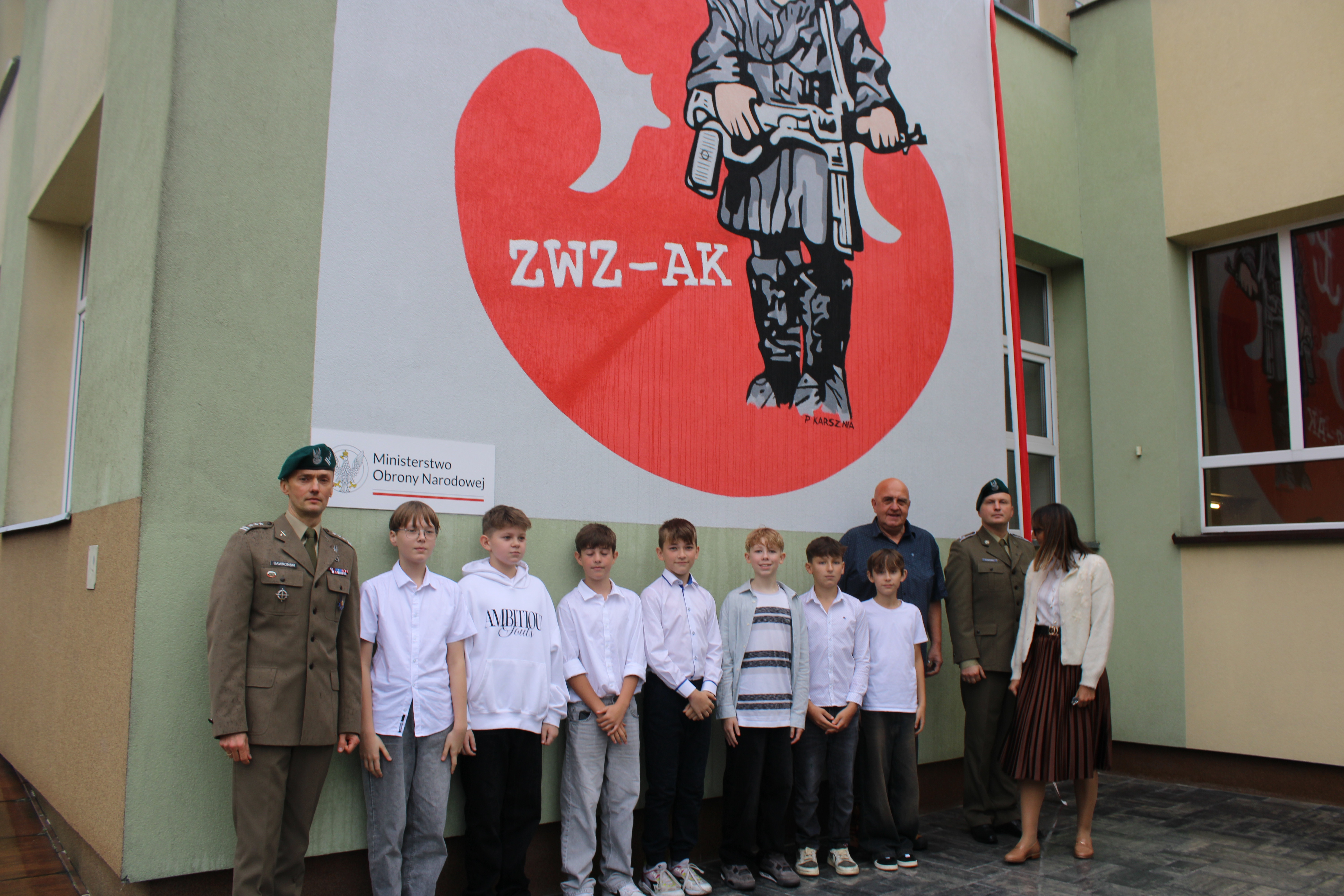 Z okazji 29. rocznicy nadania Szkole Podstawowej nr 5 w Wyszkowie imienia Żołnierzy Armii Krajowej odbył się uroczysty apel poświęcony patronowi. Głównym punktem programu było odsłonięcie muralu ,,Małego Powstańca", na wykonanie którego, działajace w szkole Stowarzyszenie Edukacji i Rozwoju ,, RAZEM" pozyskało środki z Ministerstwa Obrony Narodowej w ramach projektu ,,Mur-ale historia wojska polskiego". Podpisanie umowy odbyło się 7 lipca w siedzibie Ministerstwa Obrony Narodowej. Umowę podpisał w imieniu Ministra zastępca dyrektora Departamentu Edukacji, Kultury i Dziedzictwa, zaś ze strony stowarzyszenia -Prezes Zarządu Mirosława Muszyńska oraz Wice Prezes i jednocześnie dyrektor szkoły Zbigniew Szczerba. W szkolnej uroczystości wziął udział przedstawiciel MON pułkownik Krzysztof Gawroński, autor projektu i wykonawca muralu Piotr Karsznia, żołnierze z Wojskowego Centrum Rekrutacji w Wyszkowie oraz przedstawiciele Rady Rodziców. Uczniowie naszej szkoły przybliżyli uczniom historię Powstania Warszawskiego, zaś szkolny chór oraz soliści zaprezentowali piosenki powstańcze. Patriotyczno- historyczna roczystość była podniosła i bardzo wzruszająca.