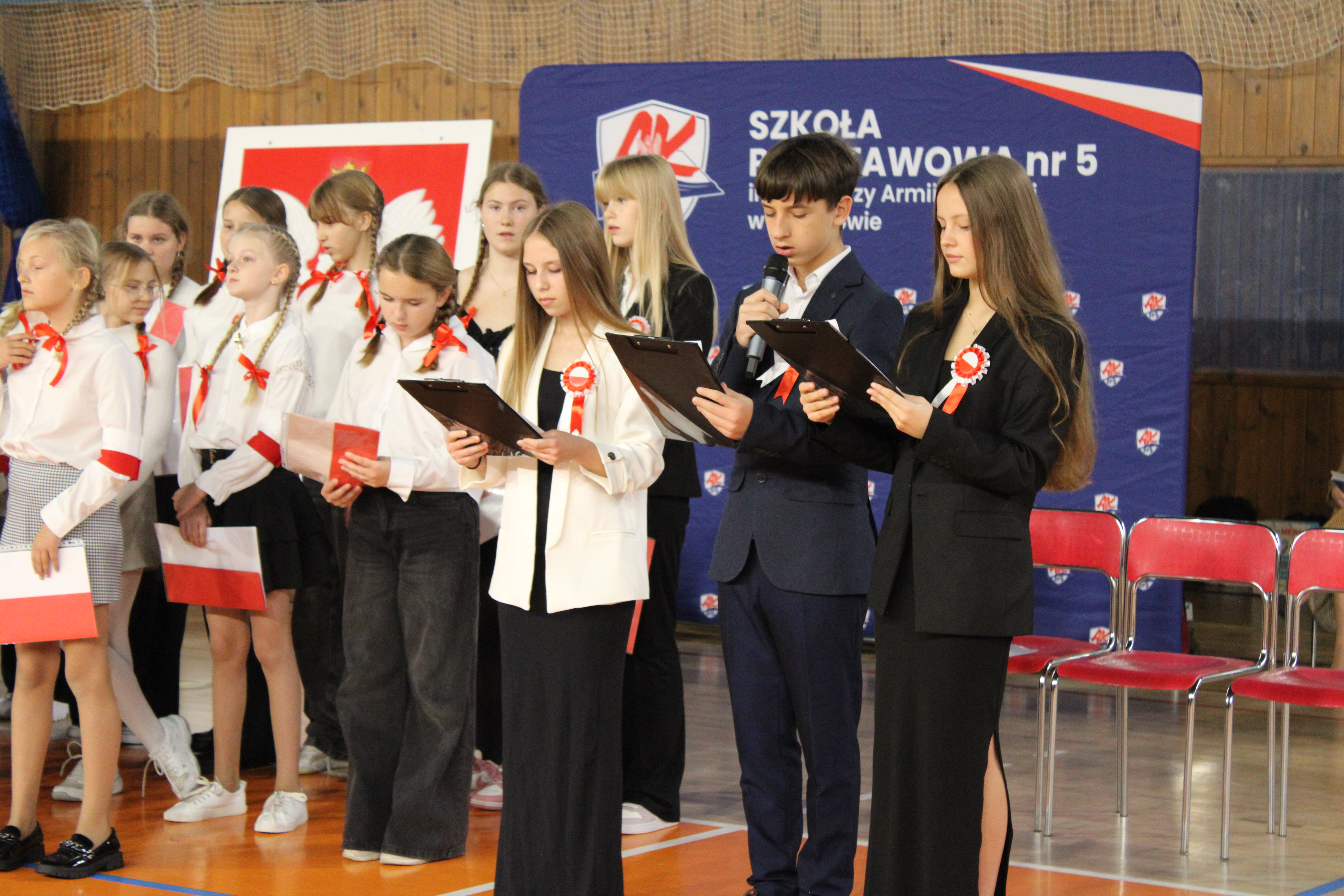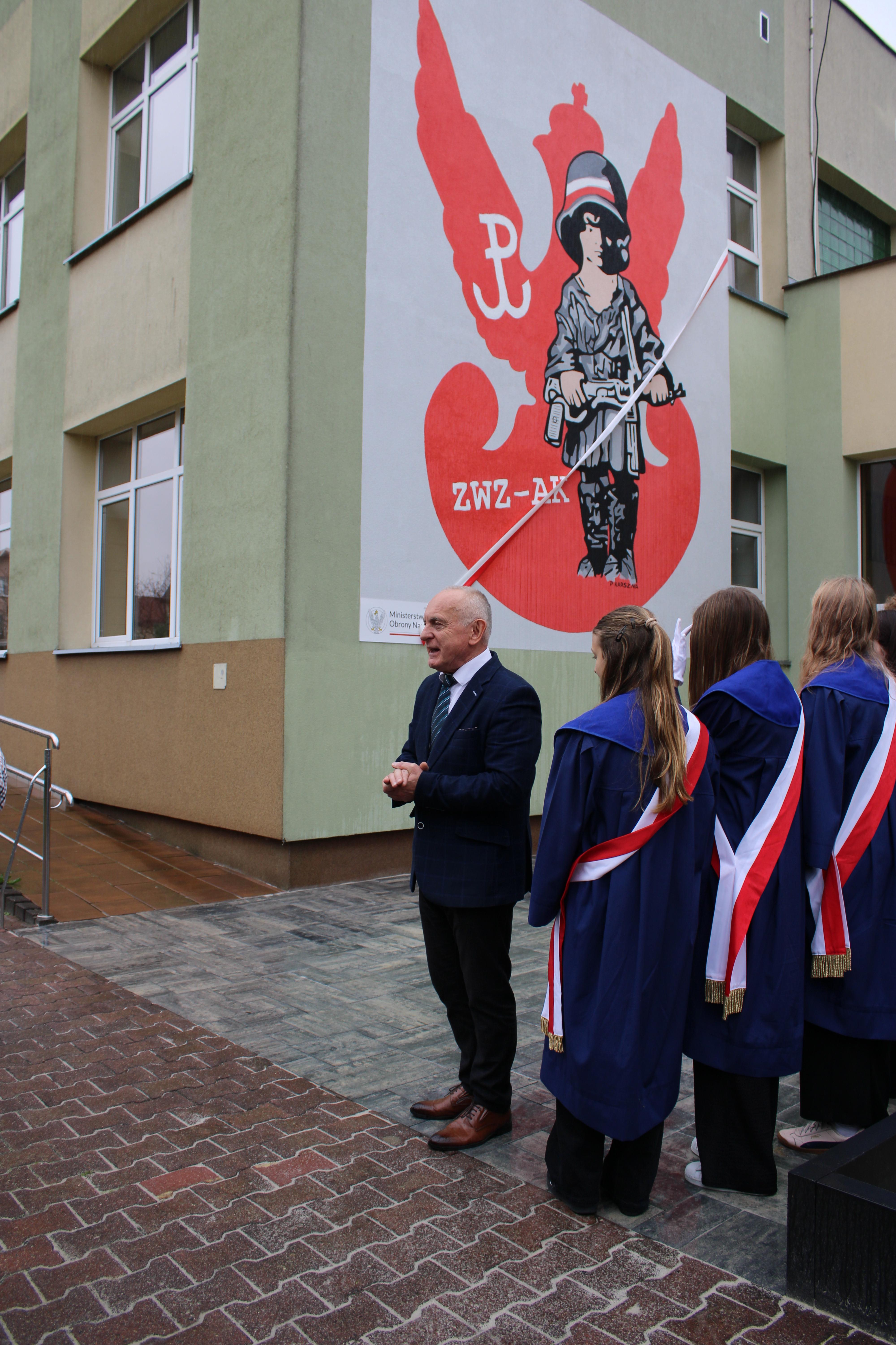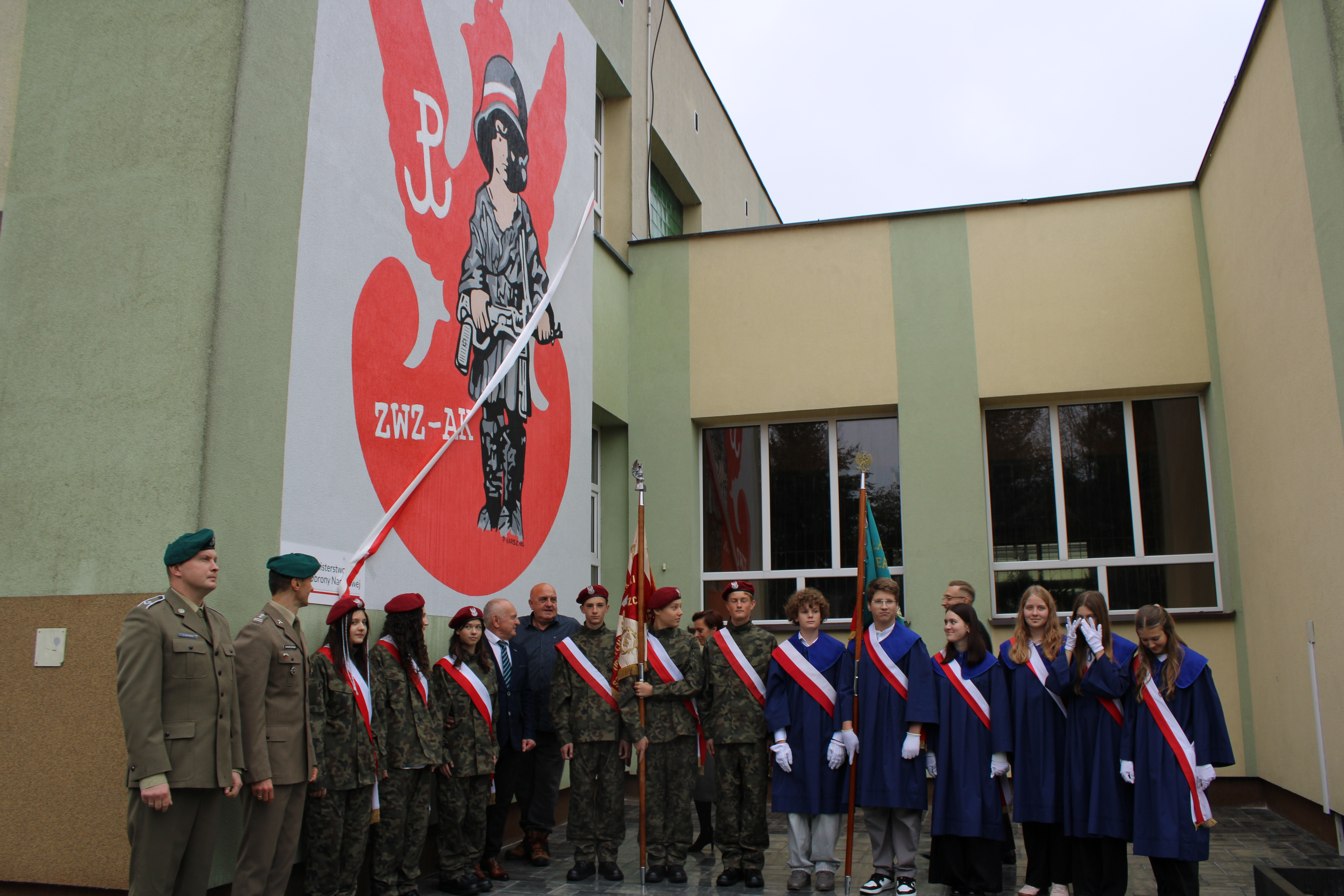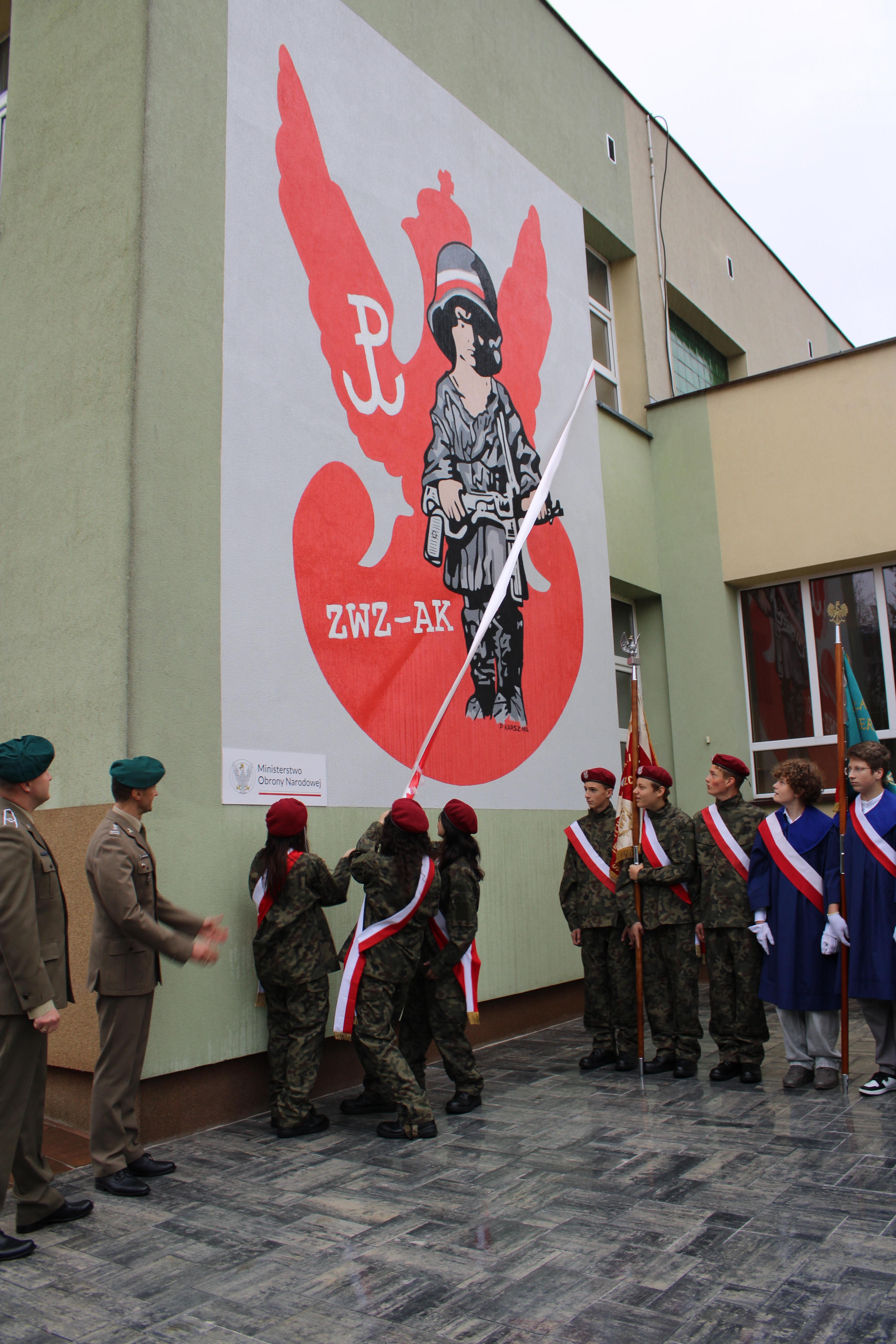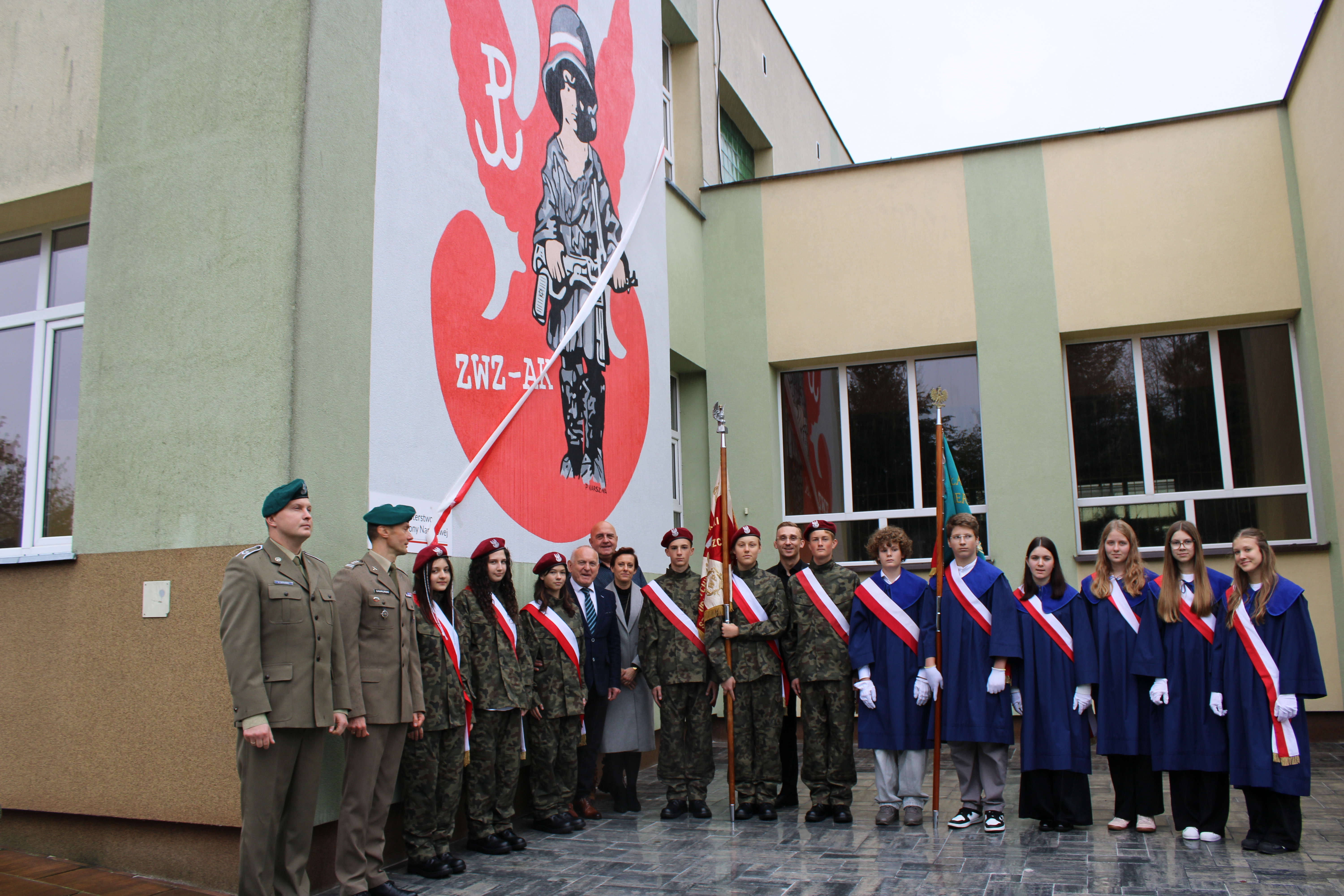 Z okazji 29. rocznicy nadania Szkole Podstawowej nr 5 w Wyszkowie imienia Żołnierzy Armii Krajowej odbył się uroczysty apel poświęcony patronowi. Głównym punktem programu było odsłonięcie muralu ,,Małego Powstańca", na wykonanie którego, działajace w szkole Stowarzyszenie Edukacji i Rozwoju ,, RAZEM" pozyskało środki z Ministerstwa Obrony Narodowej w ramach projektu ,,Mur-ale historia wojska polskiego". Podpisanie umowy odbyło się 7 lipca w siedzibie Ministerstwa Obrony Narodowej. Umowę podpisał w imieniu Ministra zastępca dyrektora Departamentu Edukacji, Kultury i Dziedzictwa, zaś ze strony stowarzyszenia -Prezes Zarządu Mirosława Muszyńska oraz Wice Prezes i jednocześnie dyrektor szkoły Zbigniew Szczerba. W szkolnej uroczystości wziął udział przedstawiciel MON pułkownik Krzysztof Gawroński, autor projektu i wykonawca muralu Piotr Karsznia, żołnierze z Wojskowego Centrum Rekrutacji w Wyszkowie oraz przedstawiciele Rady Rodziców. Uczniowie naszej szkoły przybliżyli uczniom historię Powstania Warszawskiego, zaś szkolny chór oraz soliści zaprezentowali piosenki powstańcze. Patriotyczno- historyczna roczystość była podniosła i bardzo wzruszająca.