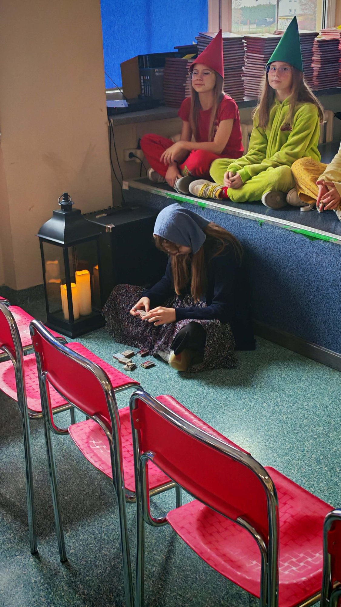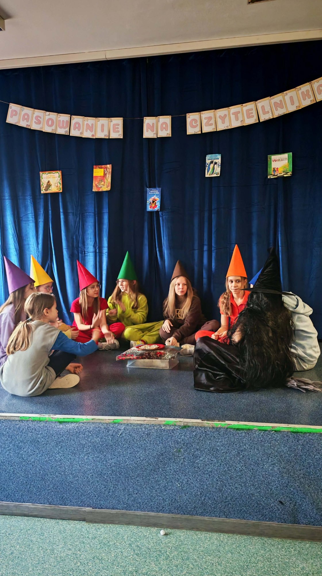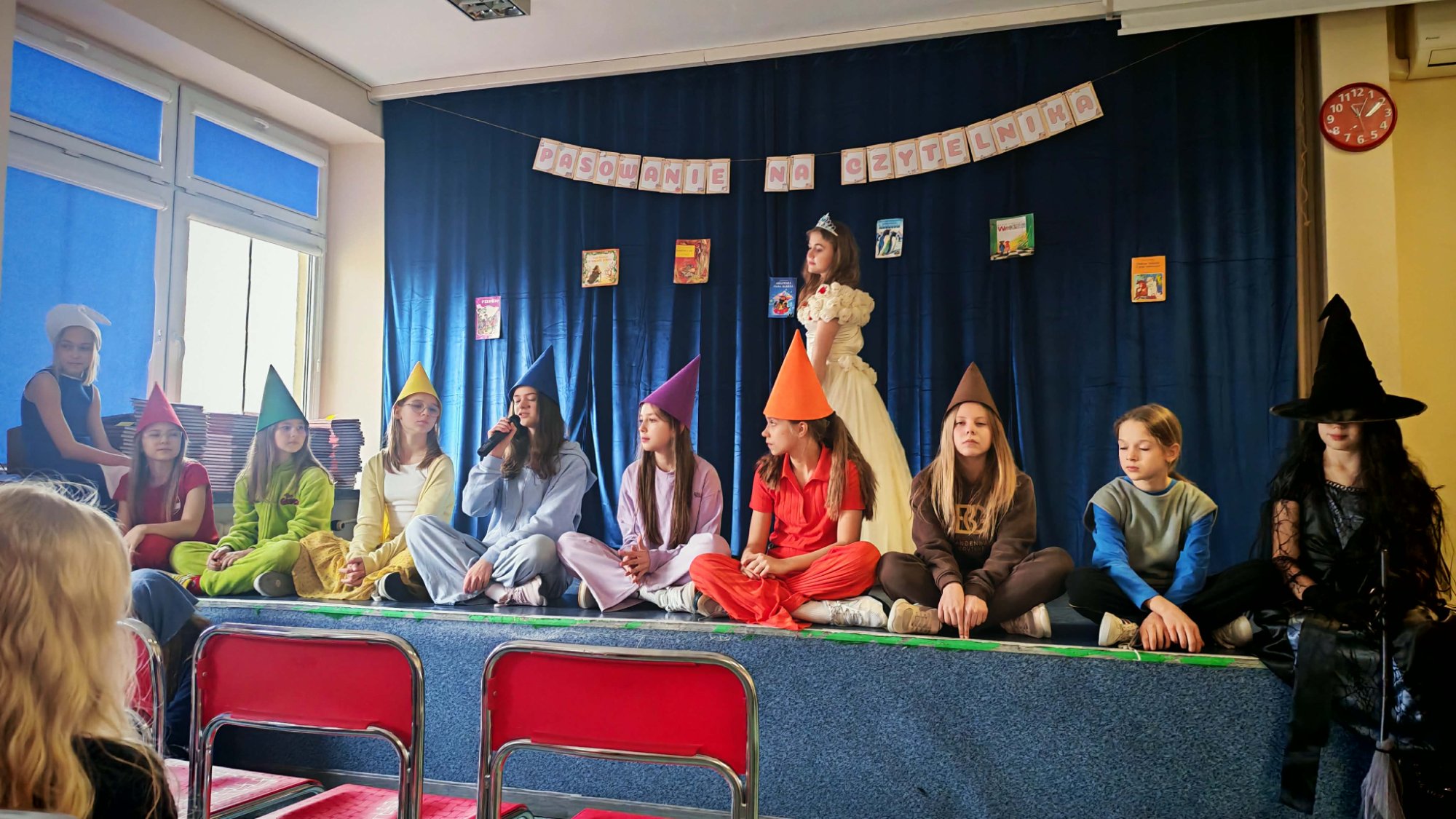 W pierwszym półroczu działalności koła teatralnego uczniowie regularnie uczestniczyli w zajęciach, podczas których rozwijali umiejętności aktorskie i dykcje, uczyli się również współpracy w grupie. Głównym efektem pracy zespołu było przygotowanie mini - spektaklu – krótkiej inscenizacji, pt. „Spotkanie bajek”, zaprezentowanej z okazji Pasowania Pierwszoklasistów na czytelnika. Przedstawienie miało charakter bajkowy i integracyjny, a jego celem było wprowadzenie najmłodszych uczniów w świat książki i biblioteki w atrakcyjnej, teatralnej formie. Wiersze i piosenki, towarzyszące spektaklowi, sprawiły pozytywny odbiór pierwszoklasistów, dały im poczucie magii… i możliwości poznawania świata poprzez pryzmat książki.